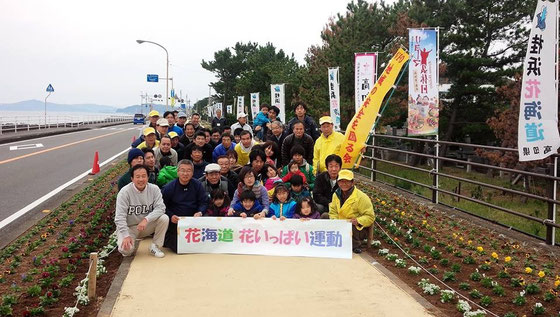 高知市浦戸地区の県道春野赤岡線、通称「花海道」にて、「桂浜花海道 花いっぱい運動」が開催され、当社からも8名の社員が参加して花の苗の植付けを行ってまいりました。
