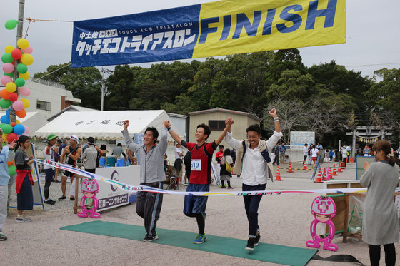 今年は、個人の部に西川徹部長が挑戦しました。リレーの部には高知大学の原研究室との連合で2チーム出場し、第一コンサルタンツからは尾﨑勝彦君がスイム、那須太郎君がバイク、吉田直起君と中平隆文君がランを担当しました。