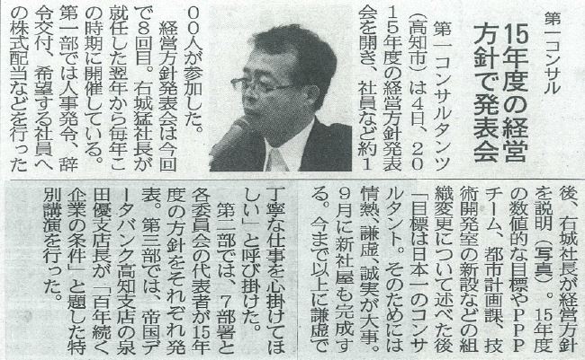 7月21日(火)に発行された建通新聞(高知)12面の地域ニュース欄に弊社の経営方針発表会の記事が掲載されました。