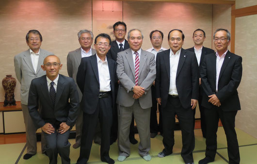その夜は汲田副社長を囲んで役員による慰労会も行いました。右城社長からねぎらいの言葉が贈られ、西岡専務の乾杯によって宴をはじめました。
