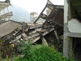 北京では,日本訪問時に中国建築学会地盤調査会の団長として訪問された書記長代理の杜文山氏(中鉄工程設計集団有限公司 副総行程師)と団員の潘氏(北京鉄路局大條工程勘測設計所 主任)、高氏(中鉄工程設計集団有限公司 副総行程師)、北京交通大学の呉教授との技術交流会を開いていただきました。成都での国際シンポジウムでは、弊社の右城が『日本における落石対策工の現状と課題』、奥村が『落石シミュレーション』について発表させていただきました。中国の技術者と多くの議論を熱心に交わすことができ、大変有意義な技術交流会となりました。さらに中国OST社での落石防護柵の性能実験は、4tの重錐を38mの高さから落下させるもので、非常に迫力がありました。翌日には、平成20年5月12日に発生した四川大地震(汶川地震)による岩盤崩壊・落石現場の現地視察を行いました。ここでは、山腹に広がる無数の崩壊跡や10mを超える巨大な落石、さらには倒壊した中学校を間近で見ることができ、マグニチュード8.0の直下型地震の恐ろしさを理解することができました。