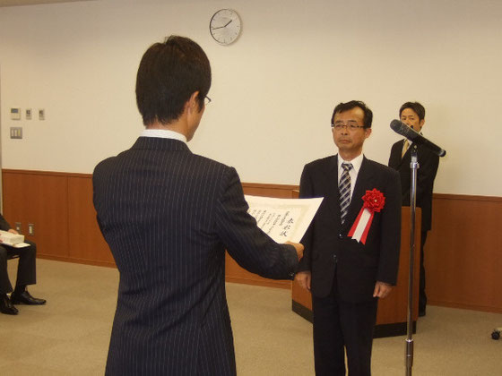 平成24年7月26日(木)に土佐国道事務所において、平成24年度国土交通行政関係功労者表彰式がありました。土佐国道事務所より受注していた「平成23年度 越知道路(2工区)法面対策工設計業務」が優秀貢献業務表彰を受賞しました。