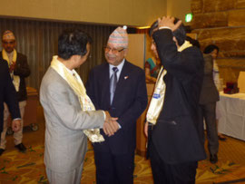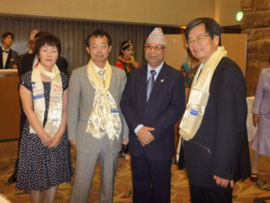18時30分からは会場を道後温泉の大和屋本館に移し、ウェルカム・レセプションがあり、当社からは、右城社長と西岡常務取締役が参加し、ネパール国の社会情勢に関する情報を収集すると共に、ネパール国首脳との親睦を深めました。