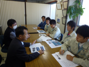 今年度は、11月25日に清岡教諭と北川勝巳君ら4名の生徒が当社に来られたので、下記の説明をさせていただきました。
