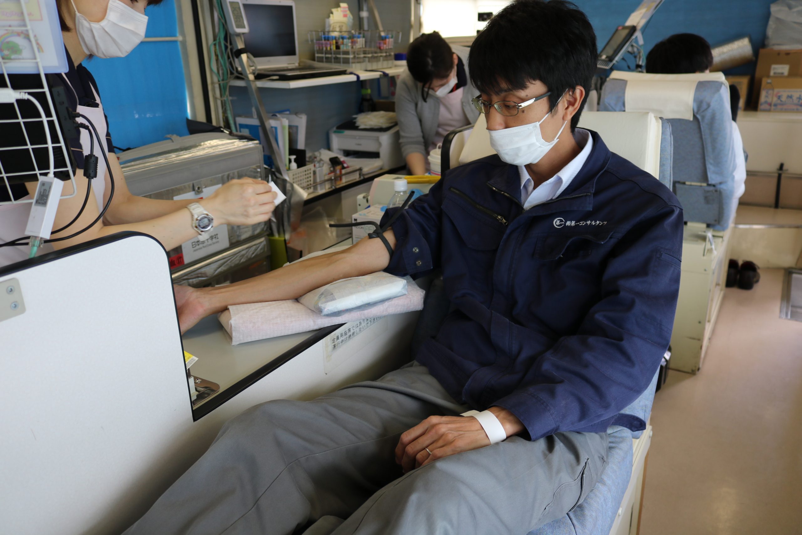 当社では2016年より毎年献血を行ってきました。またコロナウイルスが流行し血液が足りないという話があり2年前からは年2回、献血バスに来ていただき献血を行ってきました。