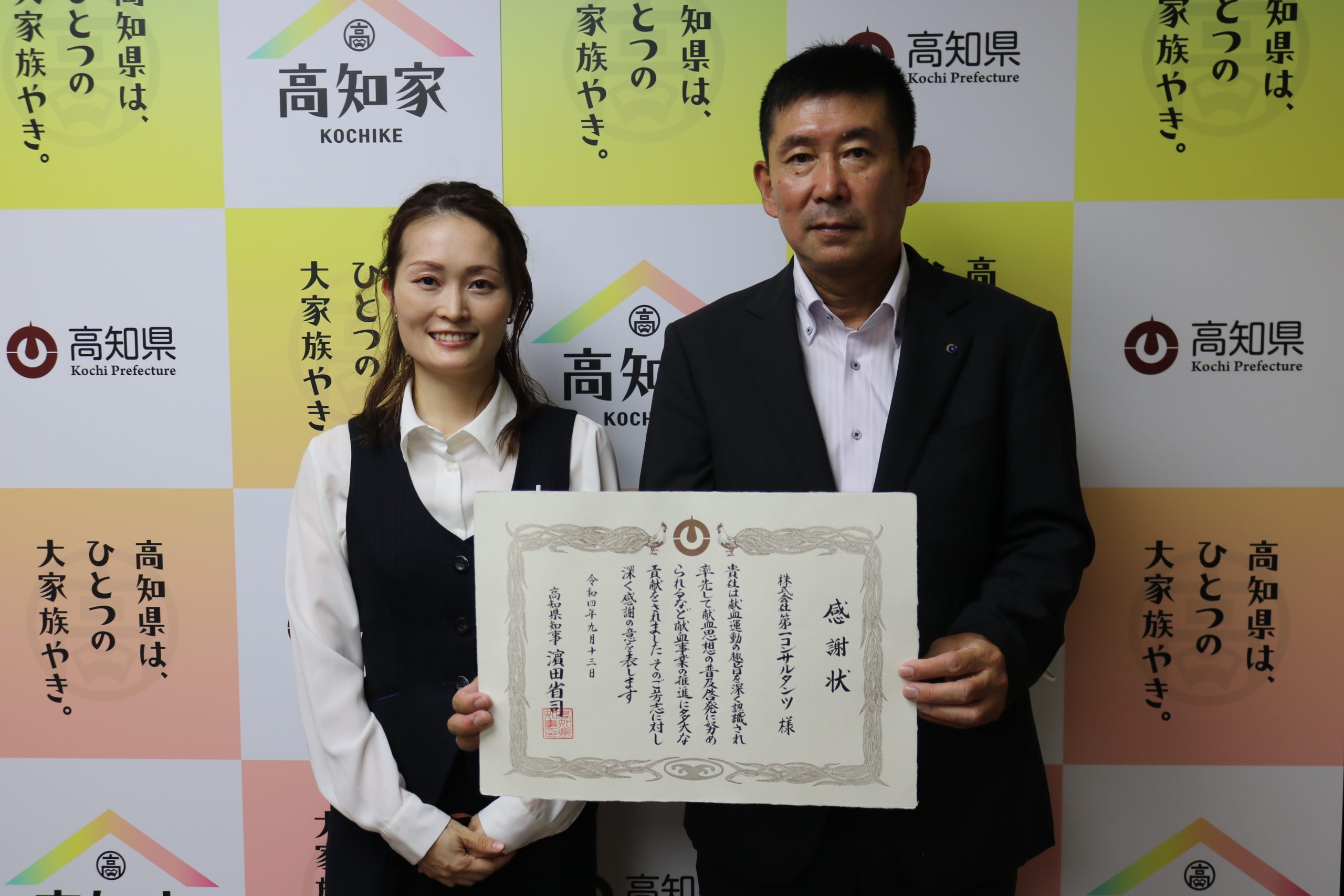 当社は、献血運動に対する取り組みが認められ、「知事感謝状」を贈呈されました。