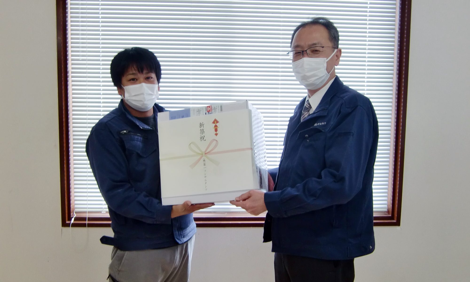 第1回の入社式を思い出して見ますと、新入社員は二人でした。新卒は西村紘寛君が一人でした。平成26年からは優秀な新卒者が毎年6~7名、今年は5名ですが、入ってくれるようになりました。とても嬉しく思っています。