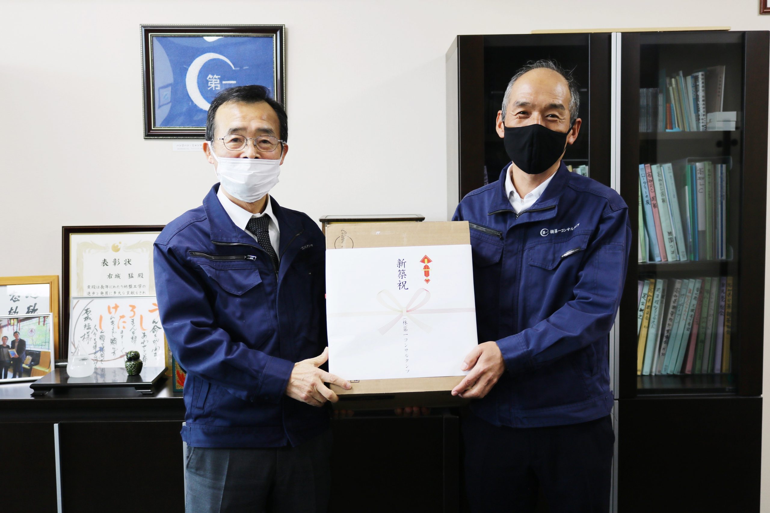 本日の入社式には、高知県議会議員の桑名龍吾様、高知市議会議員の海治甲太郎様、そして高知工科大学を来年の春に卒業される予定の山本翔さんにご出席いただいています。誠にありがとうございます。