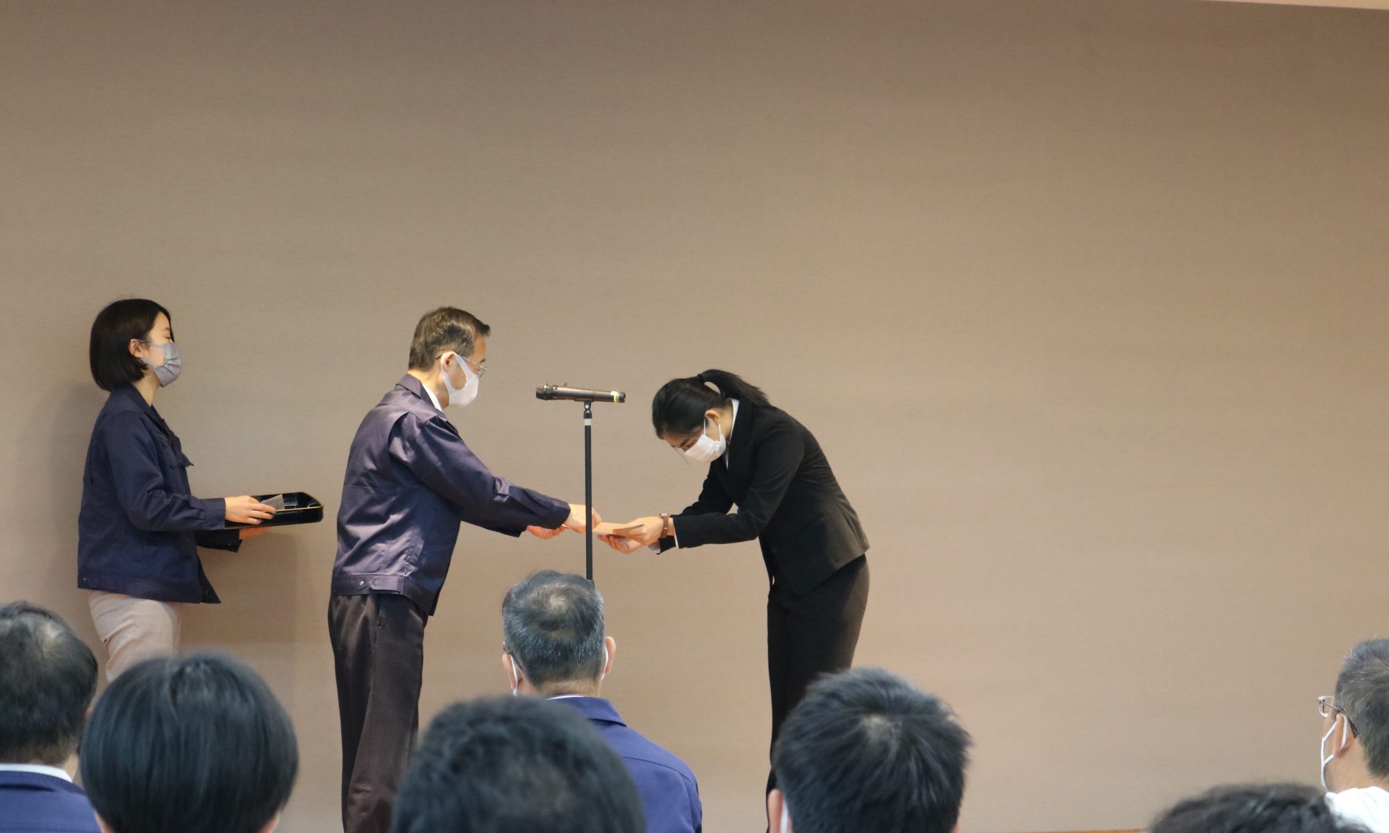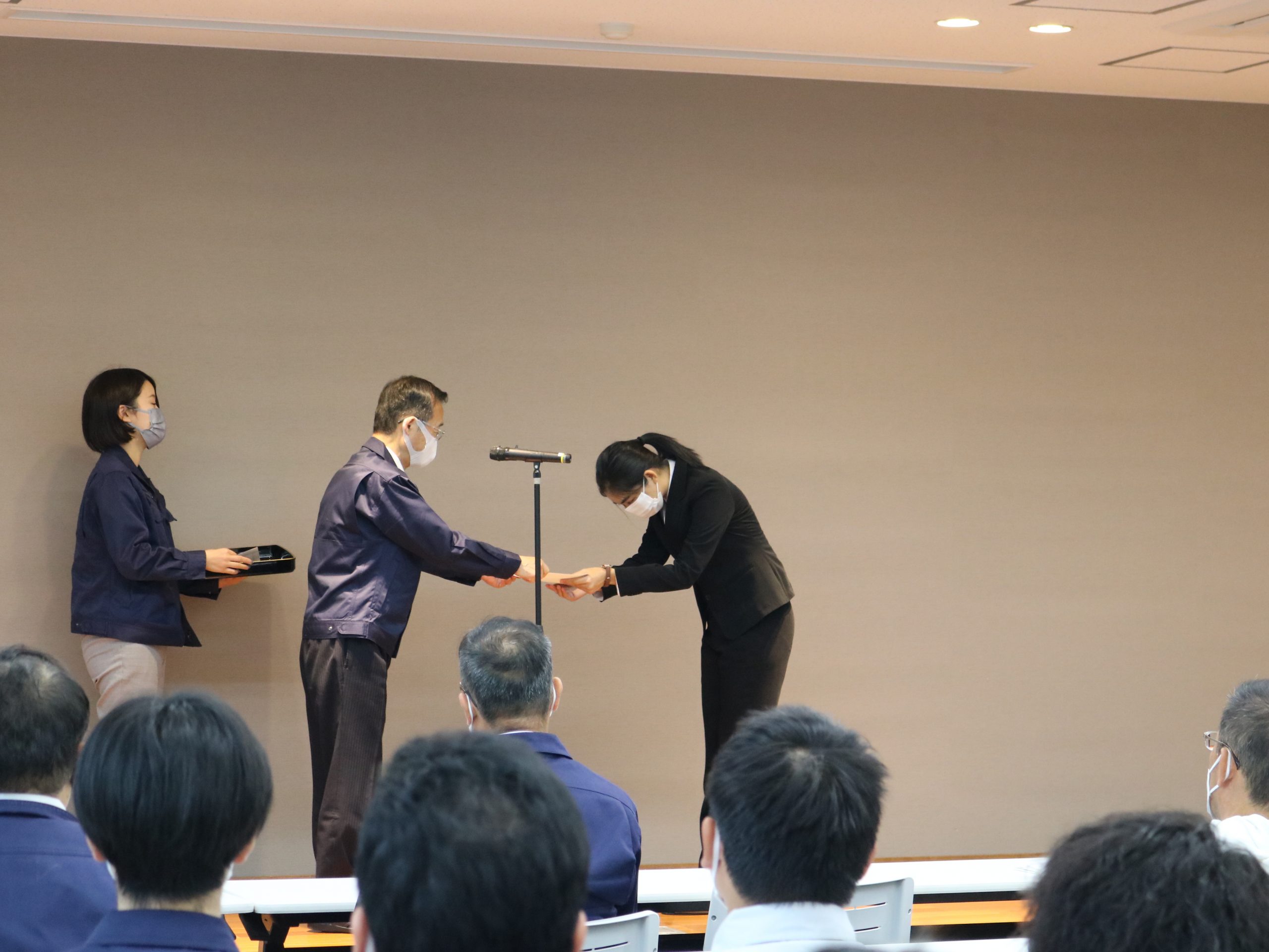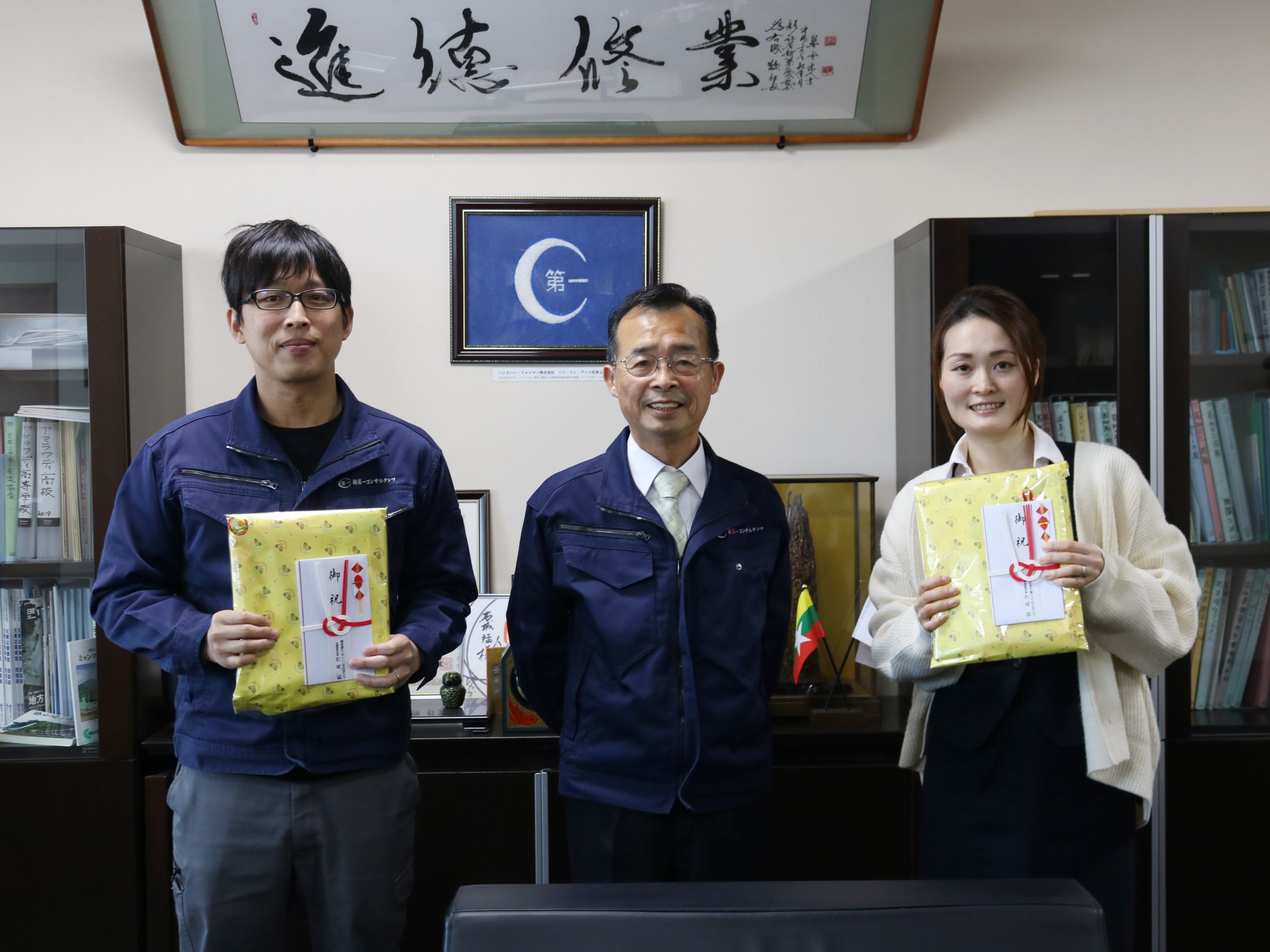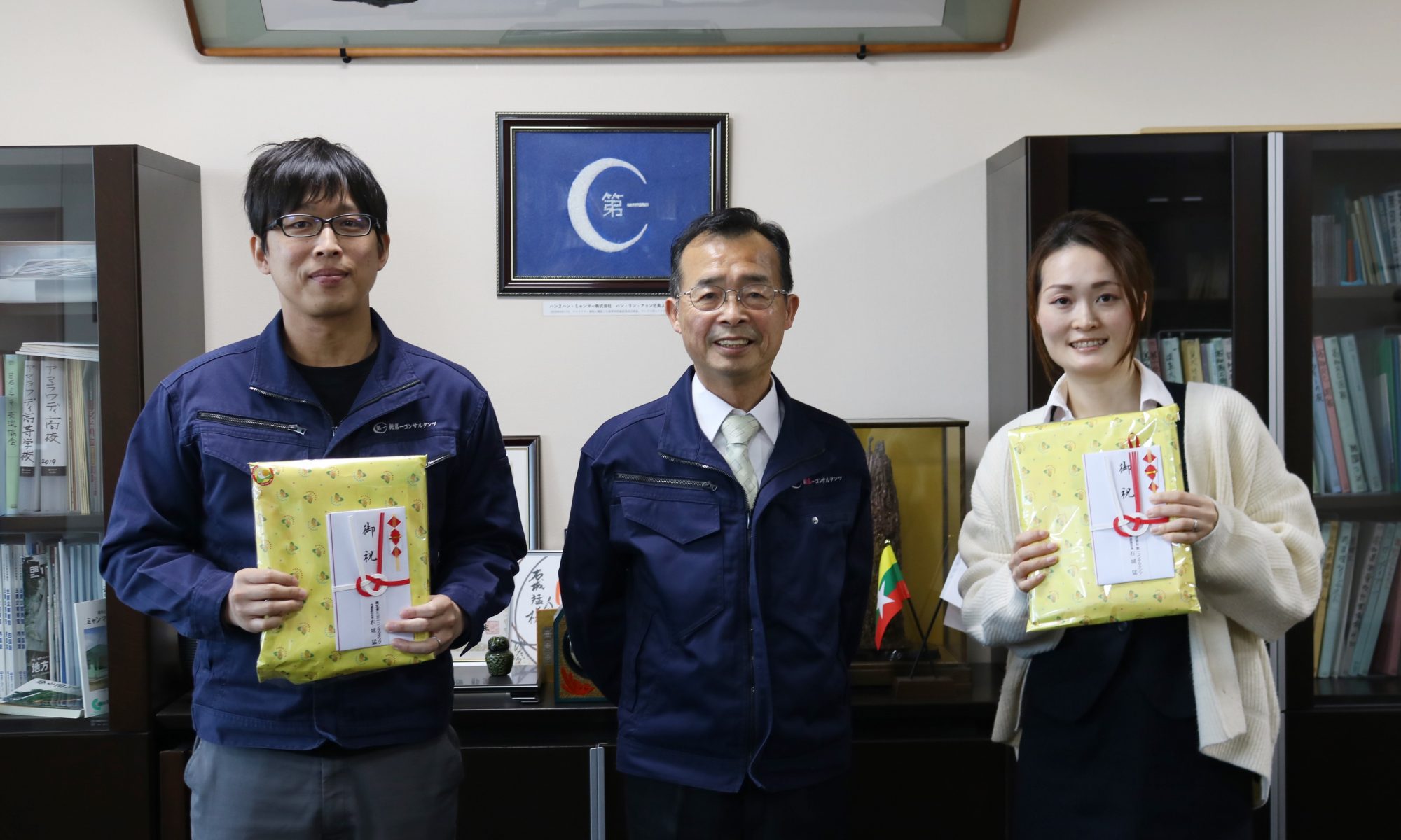 本日、昨年入社したミャンマーの3名の社員に辞令交付を行いました。