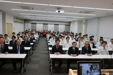 本日、高知県工業会主催の高知高専交流事業の一環として、高知工業高等専門学校ソーシャルデザイン工学科1年の学生43名、随行の先生2名が当社の見学に来られました。