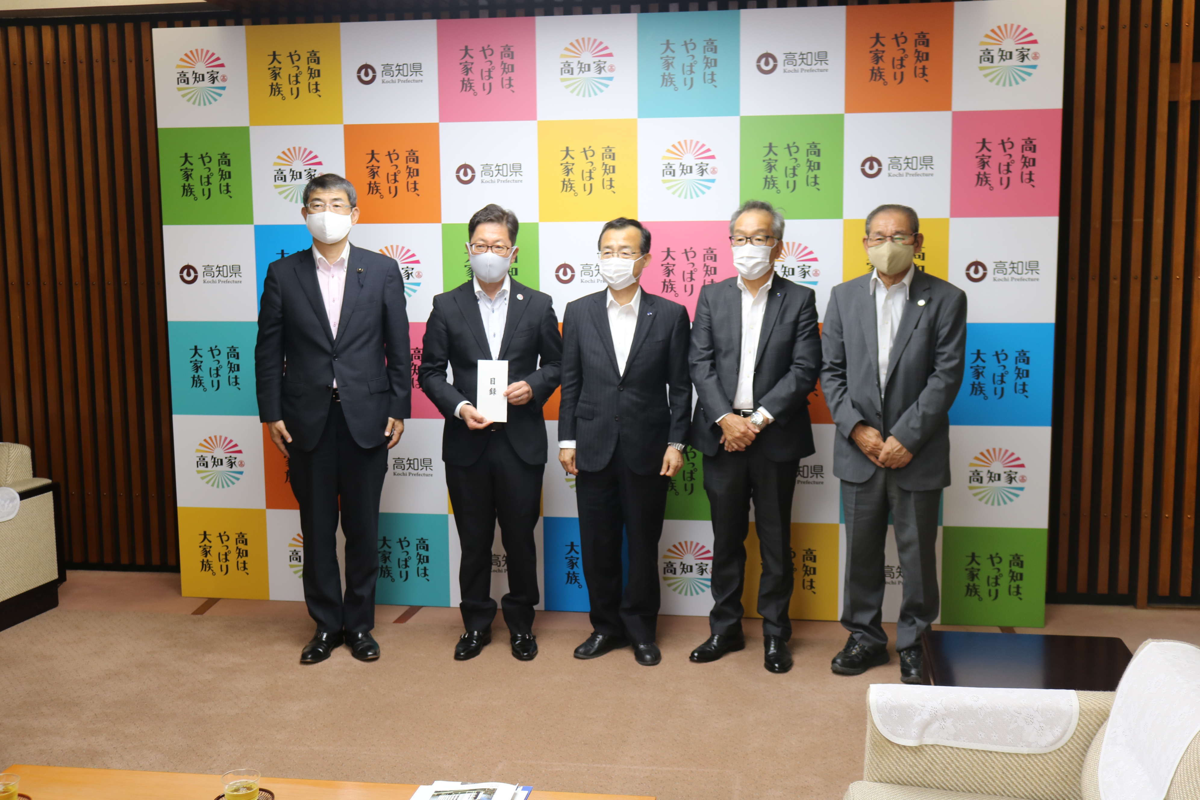 本日、右城社長と青木常務が県庁を訪問、高知県に500万円の寄附をさせていただきました。