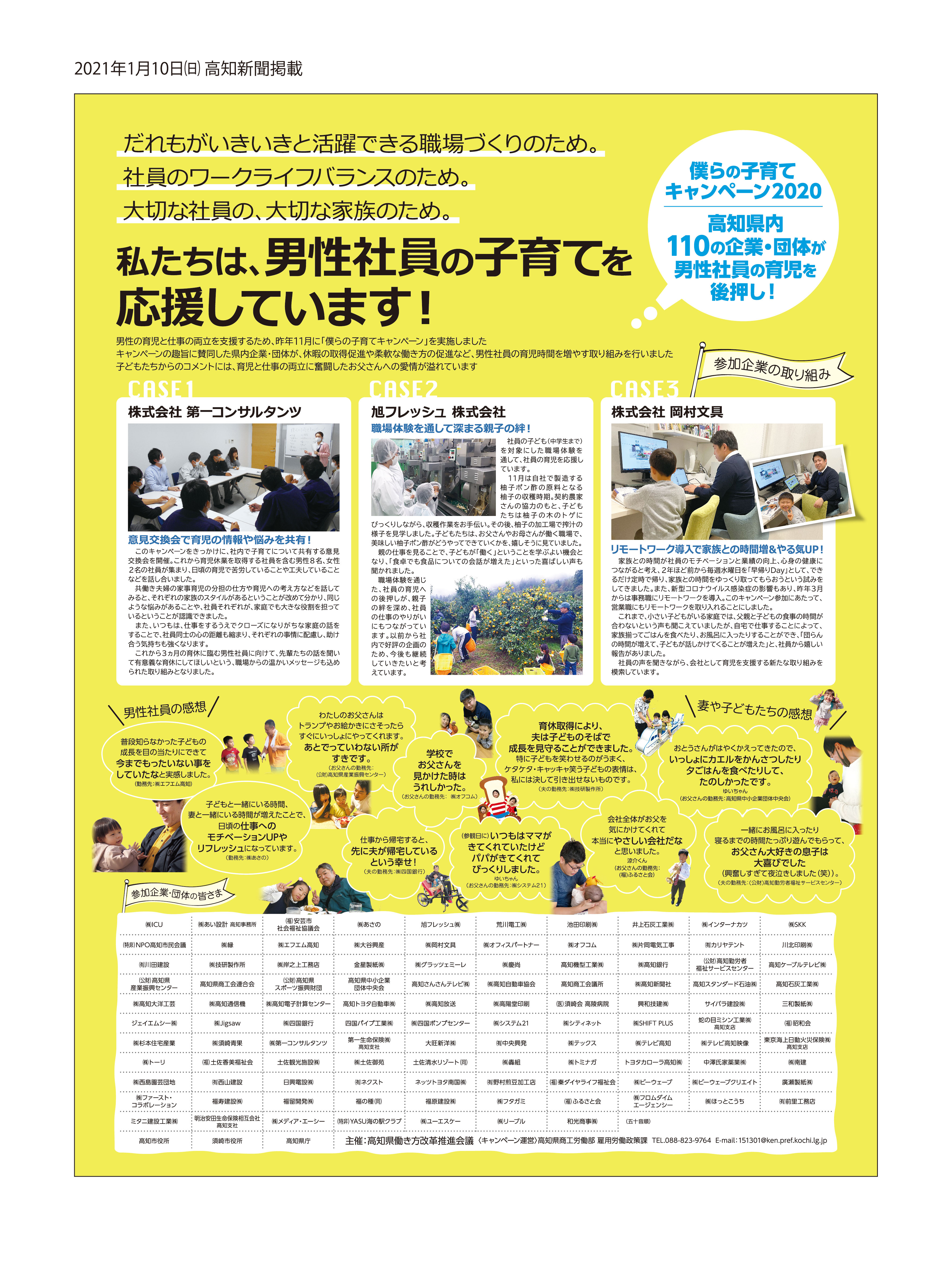 2021年1月10日の高知新聞に僕らの子育てキャンペーンについての記事が掲載されました