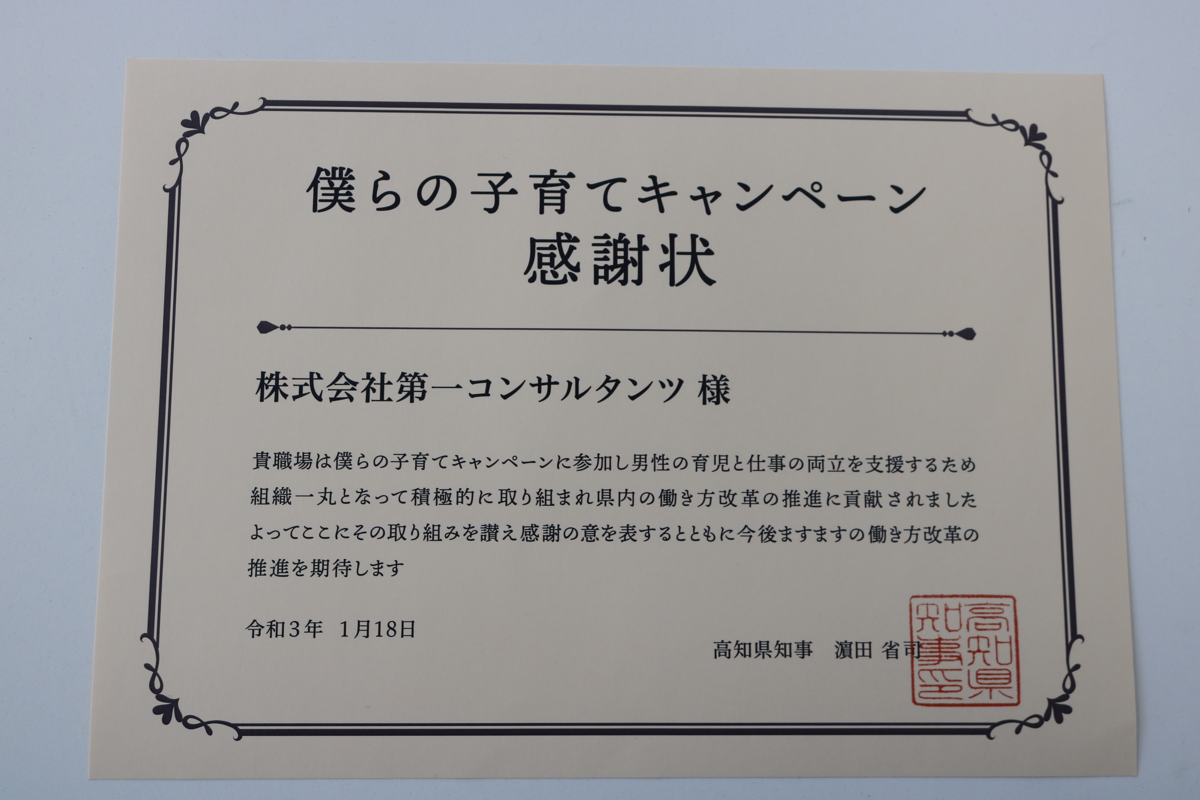 今回のキャンペーンにあたって当社の取り組みを評価して頂き高知県知事より感謝状を頂きました