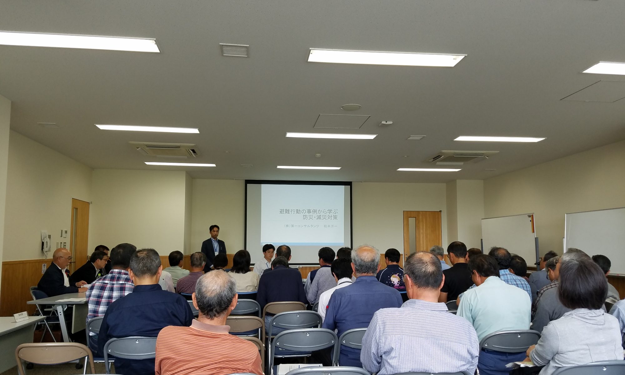 宿毛市自主防災会連絡協議会総会が開催され、設計部の松本が「避難行動の事例から学ぶ防災・減災対策」と題して講演させていただきました。