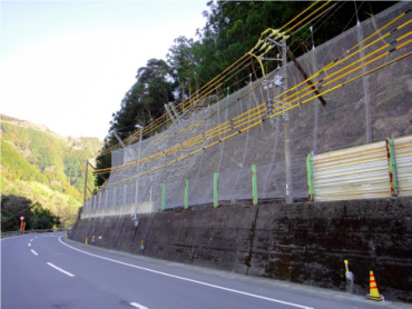 当社では、現状の①被災状況、②既設の対策工、③対策工事の実施計画を適切に把握し、対策優先度の高い斜面を抽出し、それに対する適切な落石・斜面安定工の設計を行いました。また、区間全線の防災点検の情報を整理し、その結果に基づき現地踏査を行い、今後、着目すべき防災危険箇所について防災カルテを作成し、今後の維持管理に役立てるよう整理を行いました。