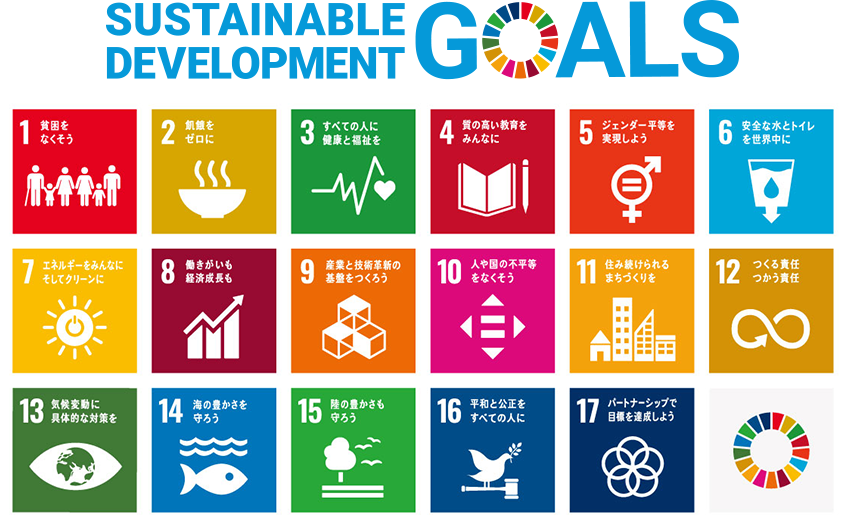 「SDGs(エスディージーズ)」とは、2015年に国連が全会一致で採択した「Sustainable Development Goals(持続可能な開発目標)」の略称です。