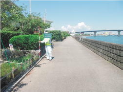 本業務は徳島県板野郡松茂町~北島町の今切川左岸の堤防沿いの一般住家、保育園及び国土交通省の事務所を含む約70棟の建物等が調査対象でした。調査に先立って関係人各位に対して挨拶に伺い、調査内容を説明し、現地調査の日程調整を行いました。調査は二班体制で行い、調査書等の図書を作成後、建物所有者に損傷等の状況を説明し、写真台帳と調査書等が現況と相違ないことを確認の後に、直筆での署名のうえ捺印を受領しました。