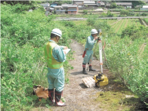 本業務は約50名の所有者に対して、一軒毎に監督職員と共に事業説明・挨拶に伺い、日程調整を行いました。何度お伺いしてもお会い出来ない方もおり、夜の堤防でボラの跳ねる様子を眺めながら監督職員の方と四方山話をしたことを覚えています。現地調査が8月から9月の暑い時期であったため、熱中症対策として水分補給を心掛けると共に、県外業務のため早出と長距離運転を余儀なくされることから体調管理に努めました。