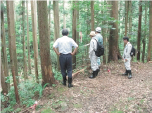 当該工事の早期着工に資するため、2業務を同時に進めました。まず、境界立会に先立って、事前に班分けし、順路を定め、立会経路等の刈払いを行うなど、円滑に境界が確認できるよう計画しました。次に物件調査を測量作業と並行して行うなどの工夫をし、工程を圧縮しました。用地測量においては、現地作業量の多い、補助基準点、境界測量等を4班体制で実施すると共に、境界測量完了後直ちに境界点間測量を行い、所定の制限内の測量結果を得ました。物件調査においては、所有者との日程調整を図り、用地測量と並行して行いました。また、調査終了時には、所有者関係等の確認を含む、調査内容を所有者に説明し、記録簿に記載する事により聞き取り内容を確実なものとし、手戻りの防止に努めました。