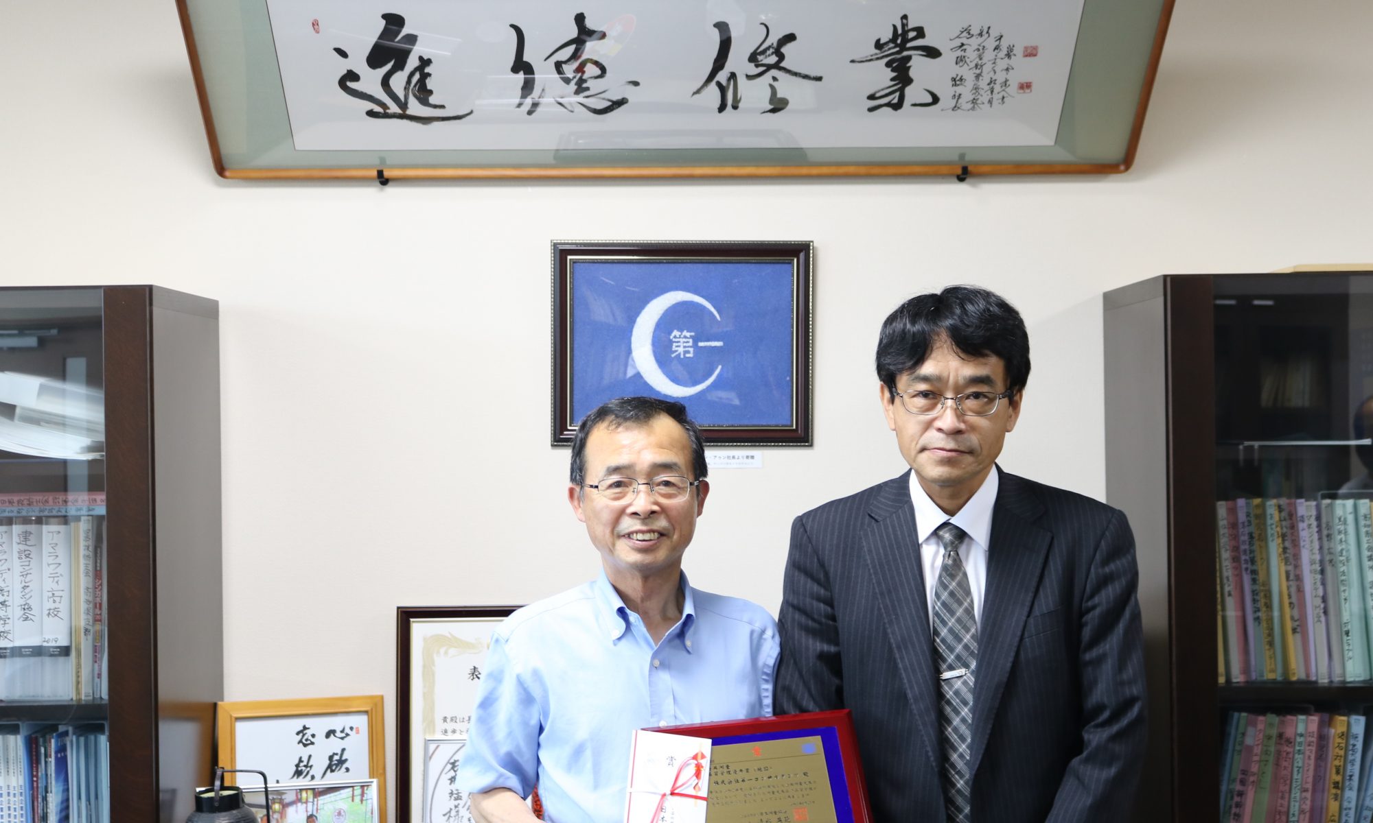 日本測量協会四国支部技術センター長の丸山一司様が弊社を訪れ、楯の授与と受賞インタビューを受けました。