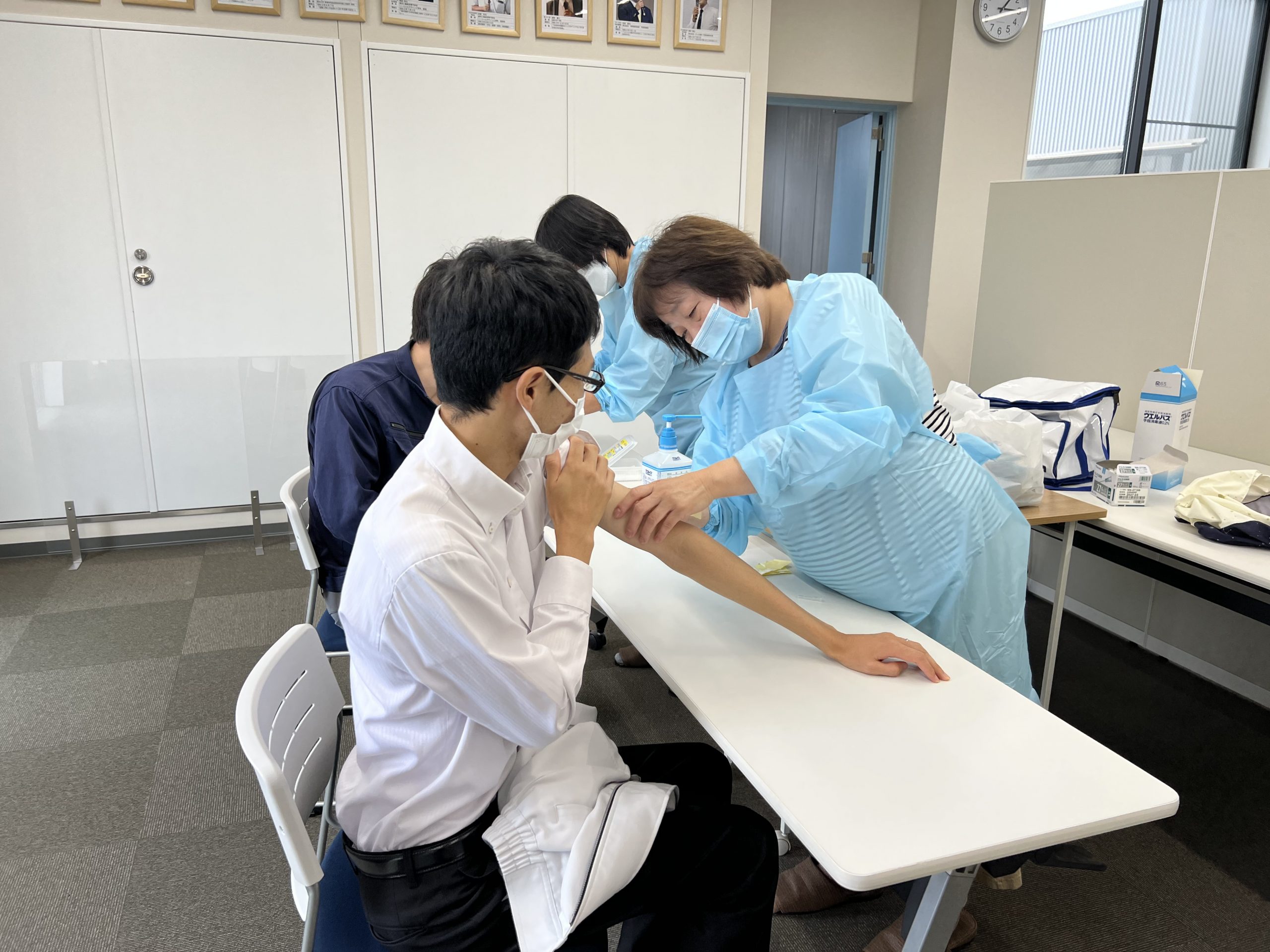 2日間に分けて行いましたが102名の社員が接種を行いました。