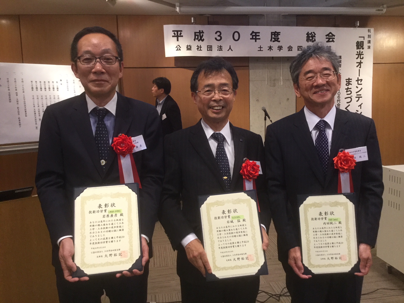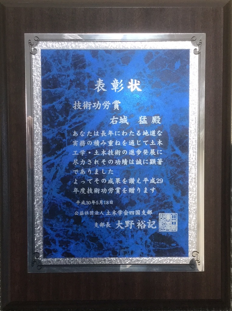 平成30年度土木学会四国支部総会で右城社長が技術功労賞を受賞しました。