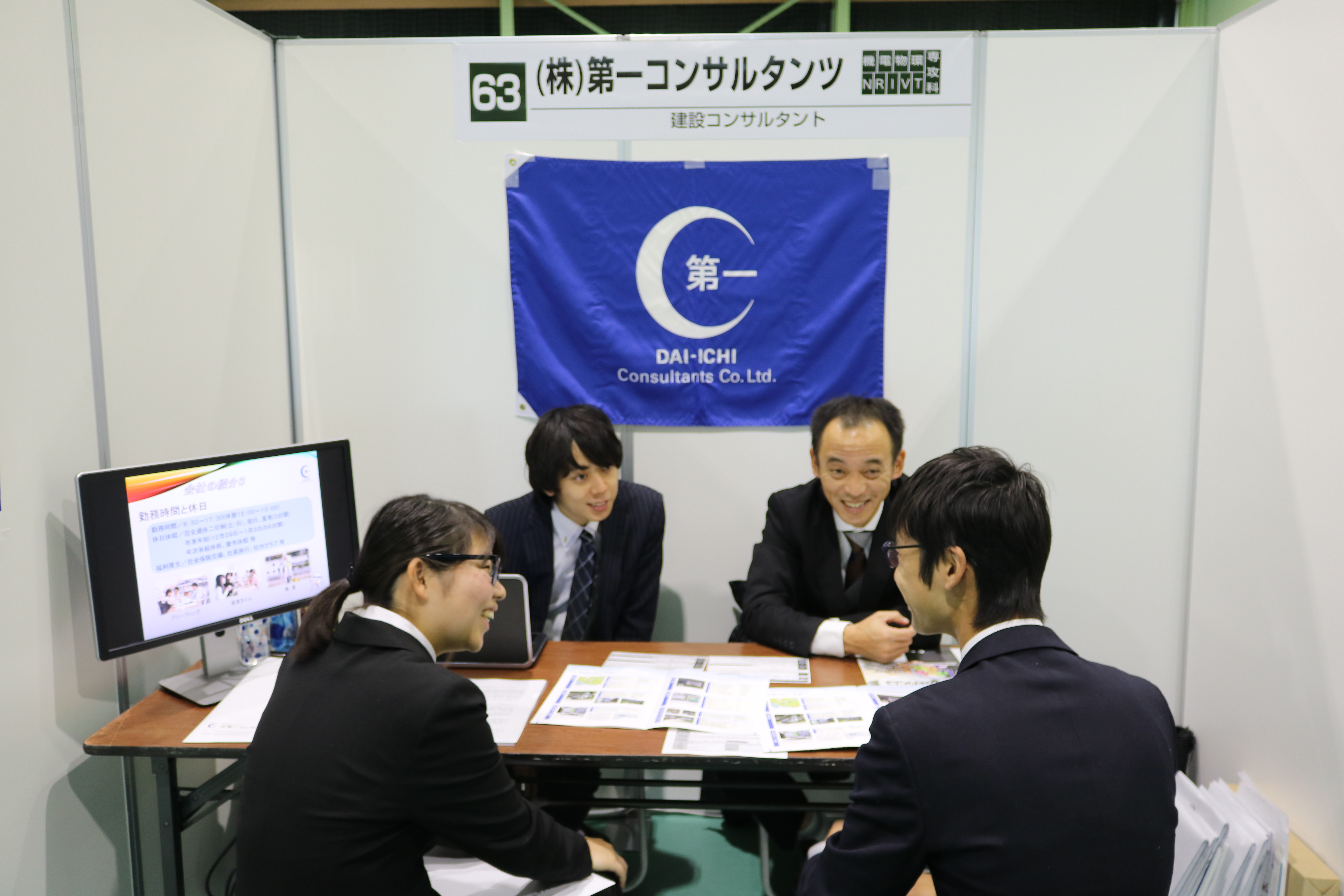 高知高専4年生と専攻科の学生を主体に限られた時間の中で各企業のブースを訪問していました。学生の方々は私たちの説明を真剣に聞き、積極的な質問も多々あり、自分の将来のことを一生懸命考えている印象を受けました。中でも、弊社に興味を持って頂き、再度訪問してくれた学生もおり、大変嬉しく思いました。会社訪問は随時受け付けておりますので、是非お声掛けください。訪問してくださいました学生の皆さんありがとうございました。