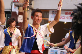 「トラックよさこい」の地方車が、「よいさ、ほいさ」と車体を左右に大きく揺らしながら演舞場に入ってくると、演舞場が興奮の渦に包まれました。今年か初回出場であったため審査対象外でしたが、ダントツのうまさでした。来年は大賞に選ばれると思います。