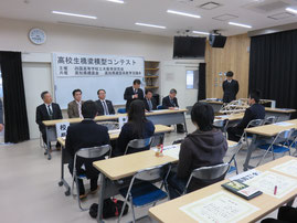 本日、高知県立高知工業高校にて「第8回橋梁模型コンテスト」が開催され、弊社の右城社長が審査委員長、設計二部の前田技師長が審査員として出席しました。参加チームは、高知工業高校5チーム、安芸桜ヶ丘高校2チーム、計7チームのエントリーがあり、優勝は軽量化を図りつつデザイン性にも優れた高知工業定時制Bチームでした。模型の審査は、強度・構造性やデザイン性・軽量性の3項目で評価されますが、毎年完成度が高い模型ばかりであり、高校生の頑張りや先生方の熱心な指導の賜物だと思われます。