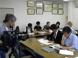 本社会議場で概略のご説明をしたあと、現地視察を行いました。この模様は当日のテレビ高知のニュースにも取り上げられ、当社の任務の重さを感じました。今後は各大学と連携しながら、担当学生の皆さんと地域にとってより良いものが出来るように共同研究していきます。