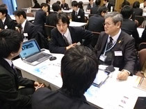 弊社からは、美土利会岡山支部長の前田技師長(徳島大学OB)、美土利会会員の矢田課長補佐(徳島大学OB)、採用窓口の恒石総務課長の3名が参加いたしました。徳島大学美土利会交流・広報委員会委員長の上月康則教授より開会のご挨拶があり、そのあと約30名の学生が2~3人のグループに分かれ、ローテーション形式で各ブースを巡回されました。このフォーラムは2回目の開催でしたが弊社は初参加。今後も機会あるごとに参加させて頂きたいと感じました。徳島大学工学部現役学生の思いを直に聴ける良い時間でした。主催者の徳島大学美土利会のご尽力に感謝いたします。