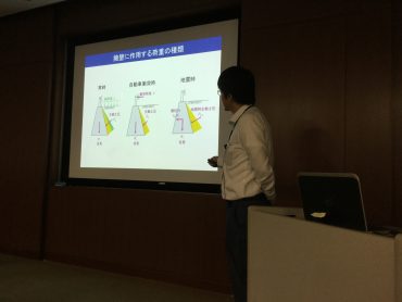 地盤工学会四国支部主催の講習会「目からウロコ 基本からわかる土圧・支持力」がサンポートホール高松でありました。1コマ目の「土圧・支持力の基本的な考え方」の講師を右城社長が、2コマ目の「土圧・支持力・擁壁の安定照査に関する演習」の講師を技術部橋梁設計課の兵頭課長補佐が務めました。