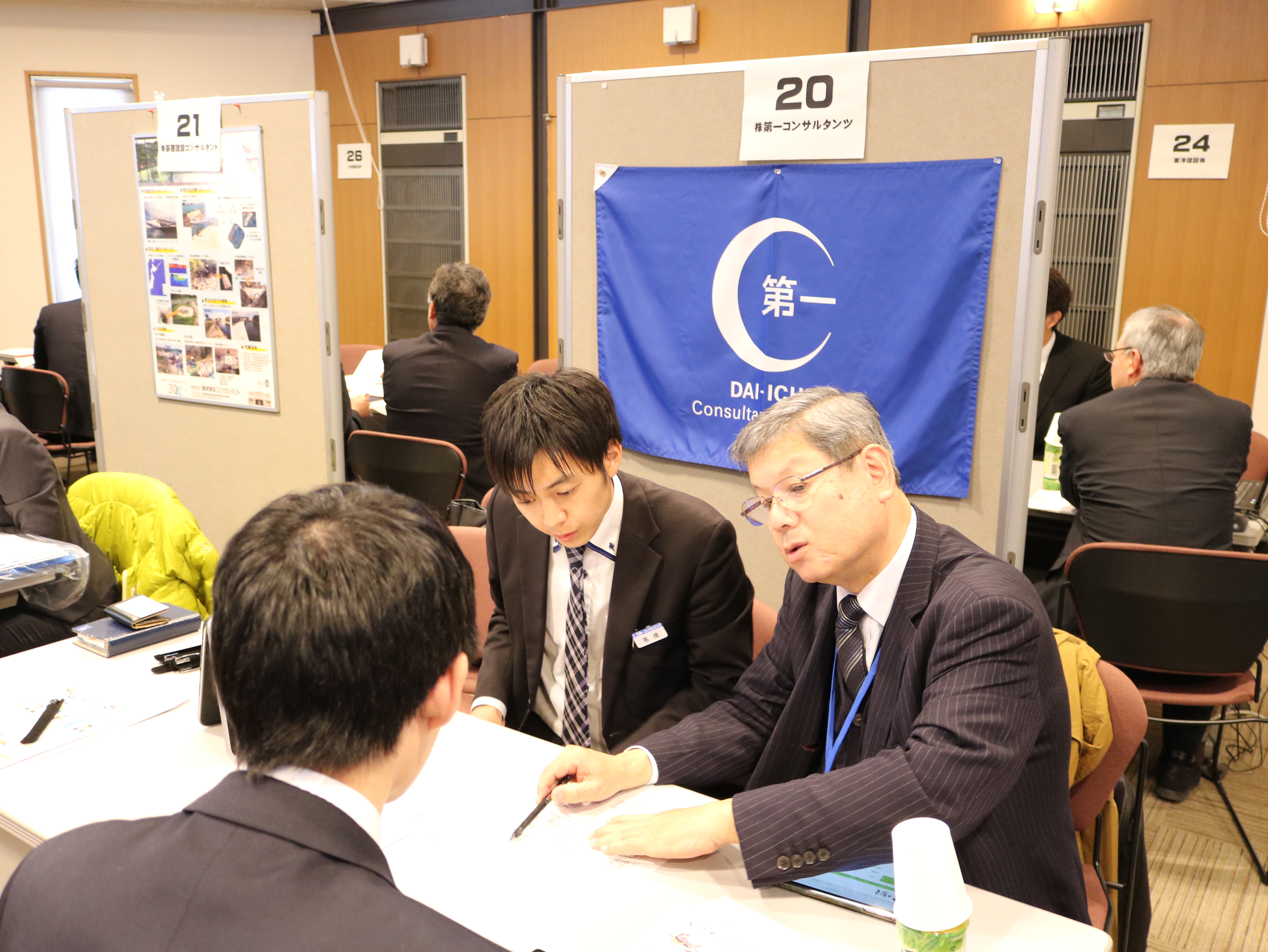 投稿日: 3月 6, 20183月 6, 2018 投稿者: daiichi-consul徳島大学美土利会主催「企業合同説明会」に参加(2018/03/06) 本日、徳島大学工学部工業会館において、徳島大学美土利会主催の「平成30年 企業合同説明会」が開催されました。 弊社からは、橋梁構造課の前田技師長(徳島大学OB、美土利会岡山支部長)、採用担当の総務課から恒石課長、高橋の3名が参加しました。 訪問学生からは内容の濃い質問などもあり、説明にも熱が入りました。具体的に自分のやりたいことが決まっている学生が多かったと感じました。 昨年度に続き5回目の参加となりますが、主催者の徳島大学美土利会のご尽力に感謝いたします。