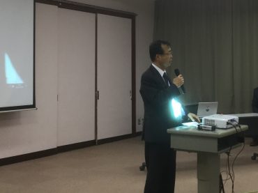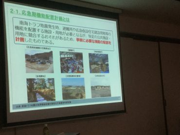また、調査部空間情報課の長崎課長補佐が高知県測量設計業を代表し、「防災減災対策における地理空間情報の活用事例」と題して、第一コンサルタンツのBCP(事業継続計画)事例などについて発表した。