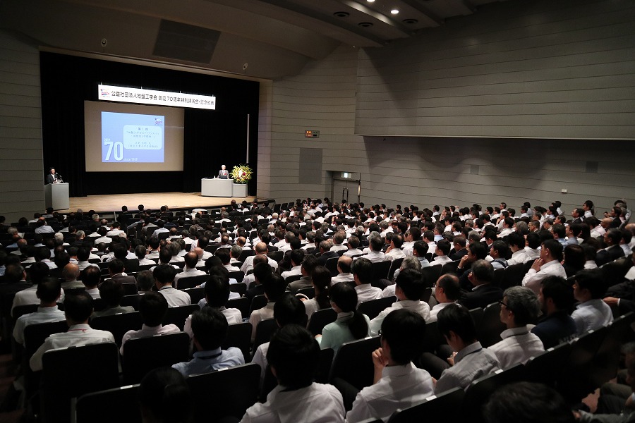 特別講演会では、前国土交通事務次官である森昌文氏が「国土交通行政が地盤工学会に期待すること」と題し、頻発する大規模な自然災害に対し、国土強靭化における地盤工学の重要性を説き、技術者や学会へ期待するところを理解しやすくお話をされていました。