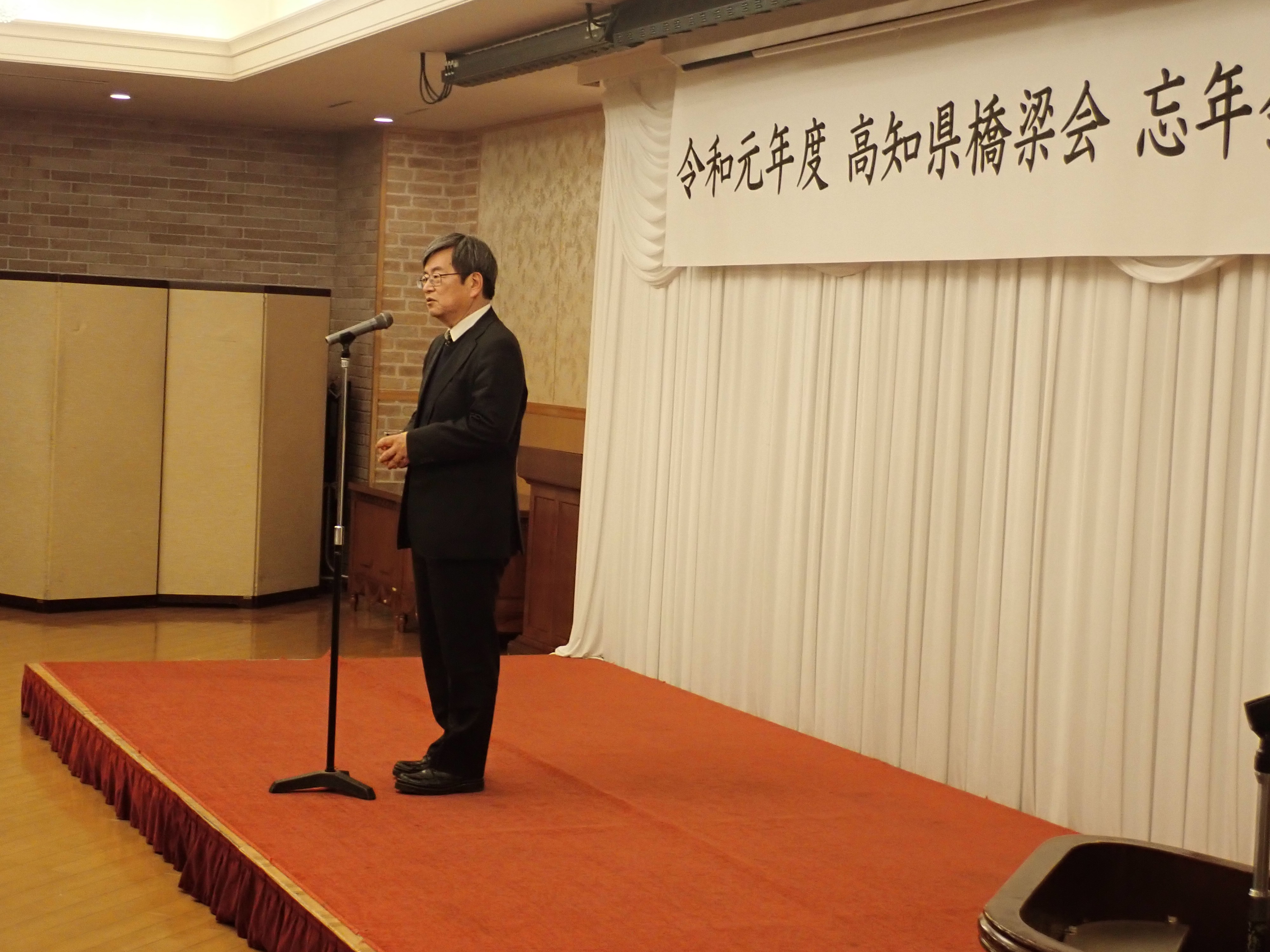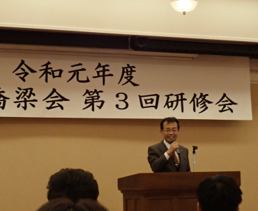 投稿日: 12月 13, 201912月 20, 2019 投稿者: daiichi-consul高知県橋梁会第3回研修会(2019/12/13) 表記の研修会が高知会館であり、弊社からは橋梁会会長の右城社長をはじめ20名が出席しました。 設計部の須内部長は「ミャンマーに高等学校を寄贈」と題して、ミャンマーはどんな国か?、なぜ高等学校の寄贈か?、起工式・落成式の模様、これからの課題について発表しました。 研修会後の忘年会では、矢田部取締役が乾杯の音頭をとり、高知のお客が賑やかに始められました。