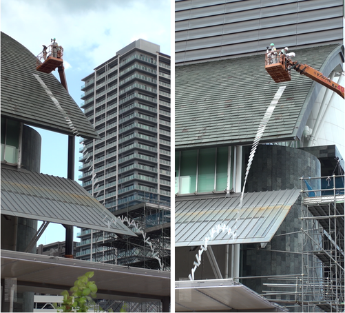 | 目 的 | スレート片が屋根面から落下する際の運動形態を観測し,運動軌跡からシミュレーション解析に用いる運動パラメータを求める。 |