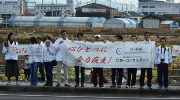 2月14日(日)、今年で第4回目となる「高知龍馬マラソン2016」が開催されました。参加者は過去最高の8,176人で、弊社からは中平隆文、吉田直起、明神怜佳、西川徹、北澤聖司の5名の社員が出場しました。また、なんこく南インター線では弊社社員が駆け付け、横断幕と太鼓で出場者を応援しました。