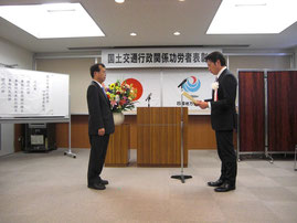 平成26年7月31日に土佐国道事務所において平成26年度国土交通行政関係功労者表彰式があり、「平成24-25年度 南国安芸道路(香南市地区)用地調査等業務」が優良業務表彰、この業務の管理技術者である柴田主任技師が優秀建設技術者表彰を受賞しました。