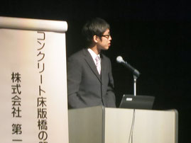 田所の発表は、コンクリート床版橋の新旧の解析理論の相違点を整理し、今後の橋梁メンテナンスの方向性を示したものです。