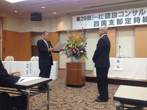 小田会長が建設コンサルタンツ協会四国支部より功労者表彰 (2013/04/24)