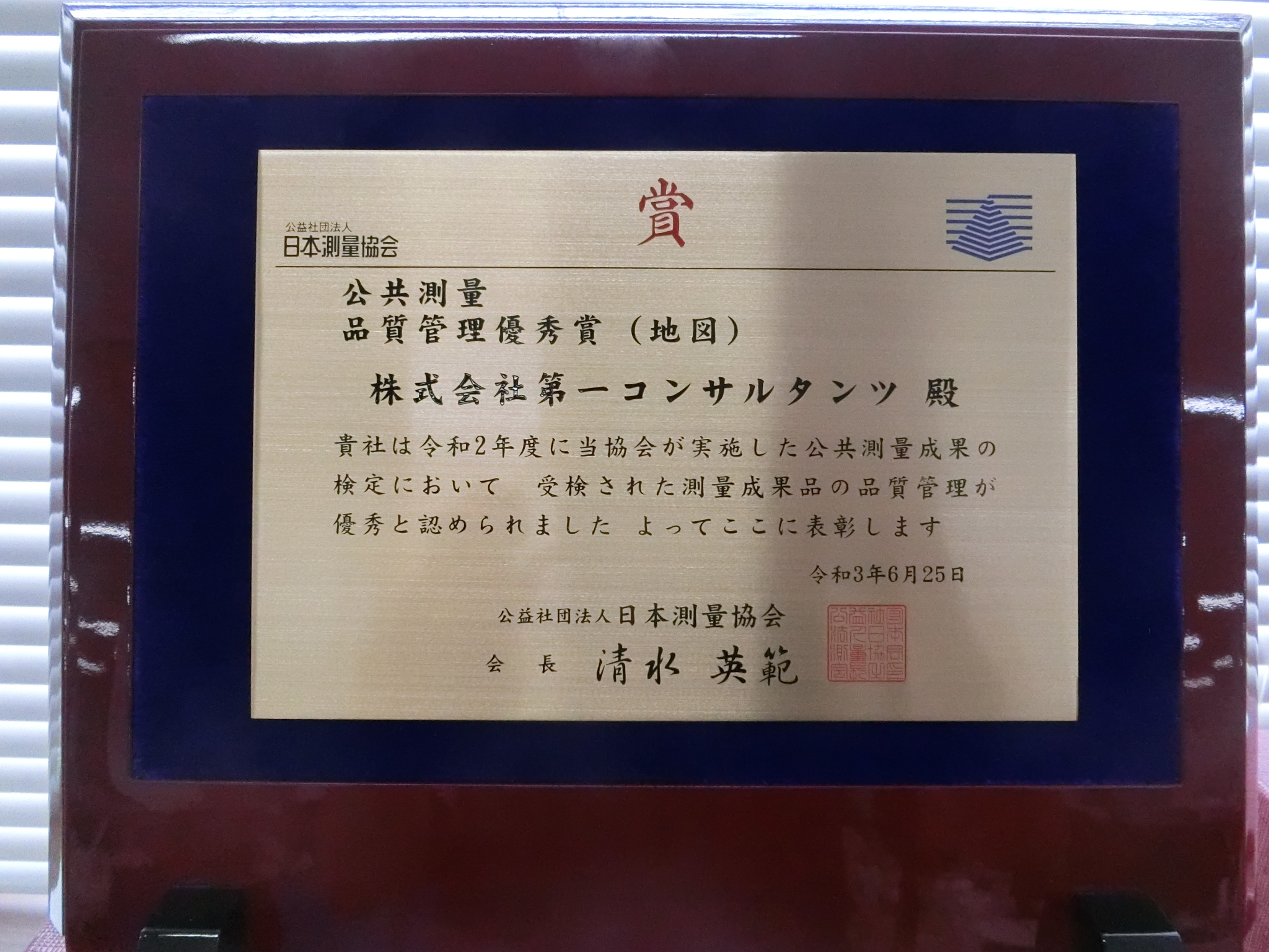 本日、栄誉ある「公共測量品質管理優秀賞(地図)」を受賞しました。