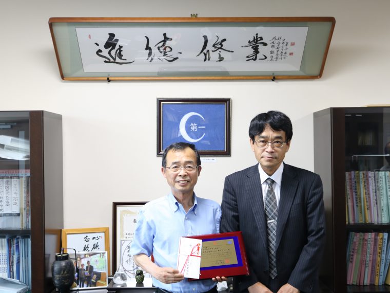 日本測量協会四国支部技術センター長の丸山一司様が弊社を訪れ、楯の授与と受賞インタビューを受けました。