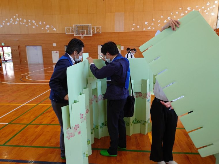 令和2年10月29日、介良中学校の避難所開設訓練に弊社防災まちづくり課6名が運営補助として参加しました。