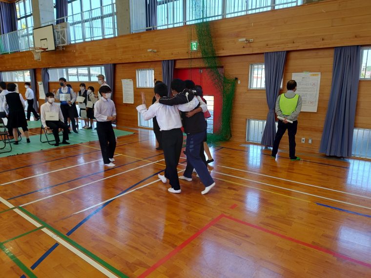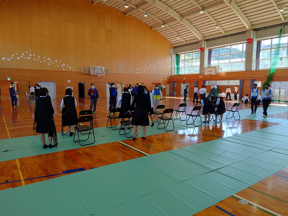 訓練では、生徒会主導のもと介良中学校3年生が主体的に避難所の開設から避難者の受入れまでを行いました。
