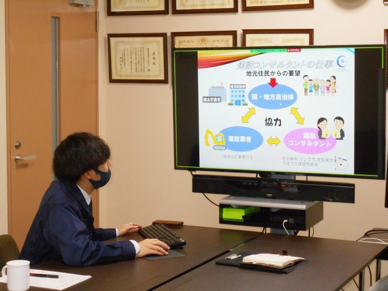 午前の部と午後の部で合計6セッションあり、各40分という時間で参加学生が各企業のブースを訪問していました。訪問学生の中には、建設コンサルタントの業種に就きたいと考えている学生さんも多々おり、大変嬉しく思いました。また、具体的に自分のやりたいことを決めている学生さんが多い印象を受け、就職活動に対する熱心さが伝わってきました。訪問してくださいました学生の皆さんありがとうございました。