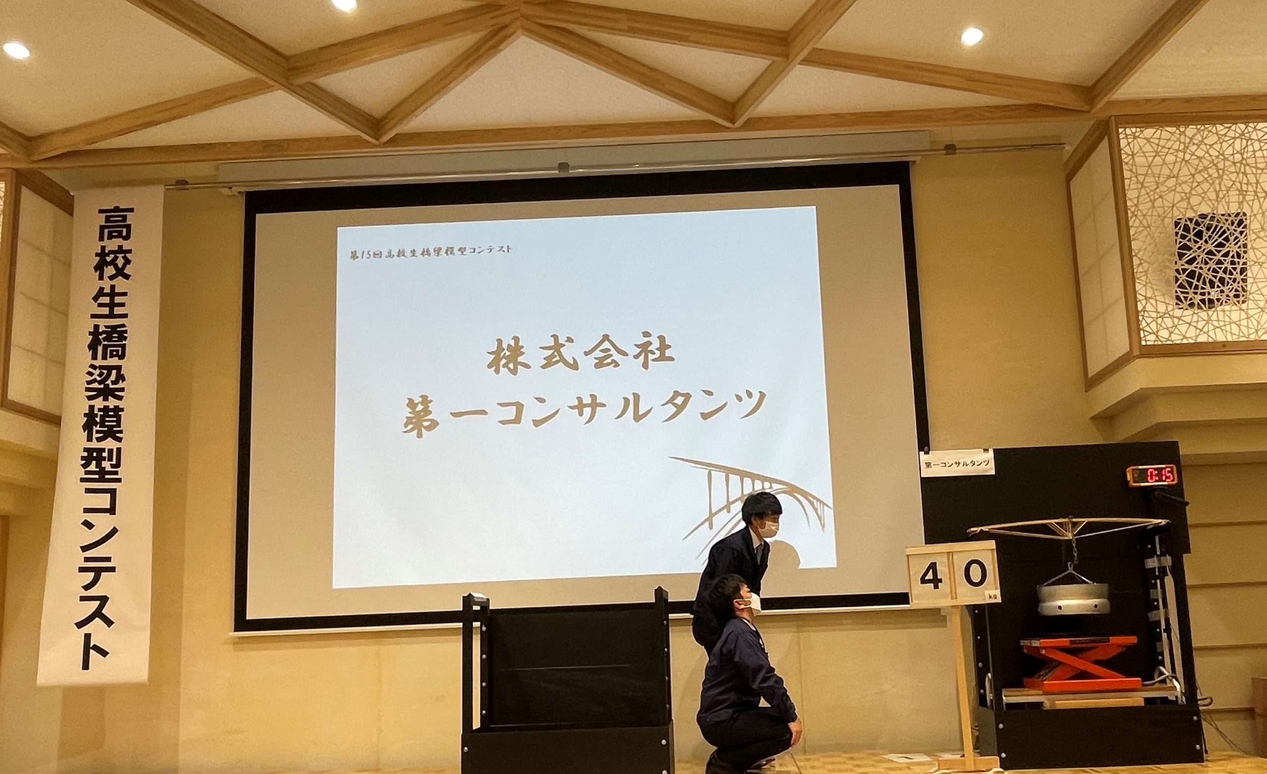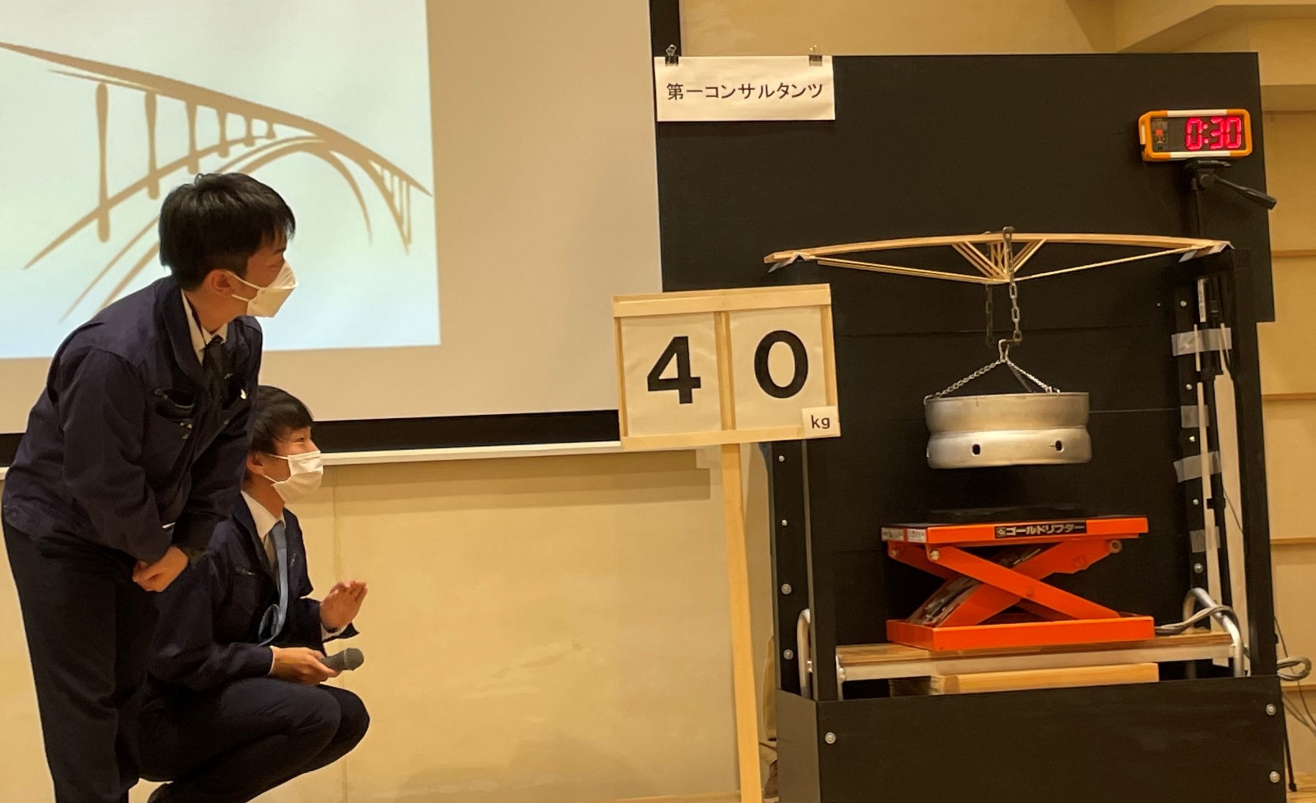 全国から9校16チームが出場して開催された橋梁模型コンテストに、設計部橋梁構造課の片山チーム(片山直道、乾隼輔、吉田萌)がオープン参加しました。