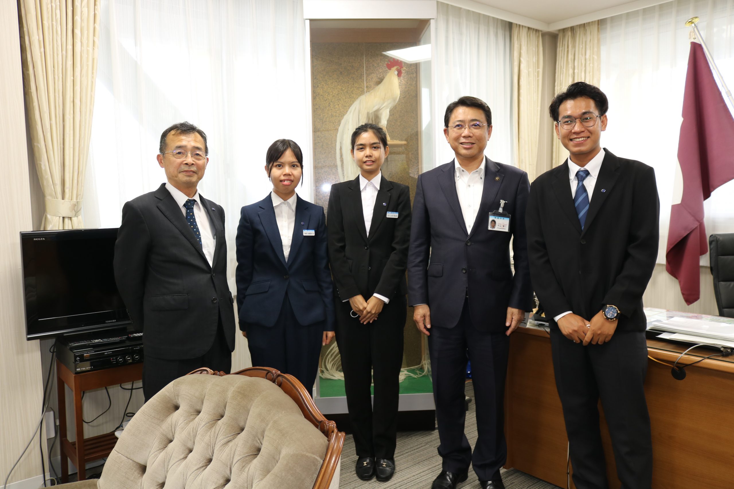 本日、ミャンマー社員3名は、右城社長と共に南国市の平山市長を表敬訪問致しました。