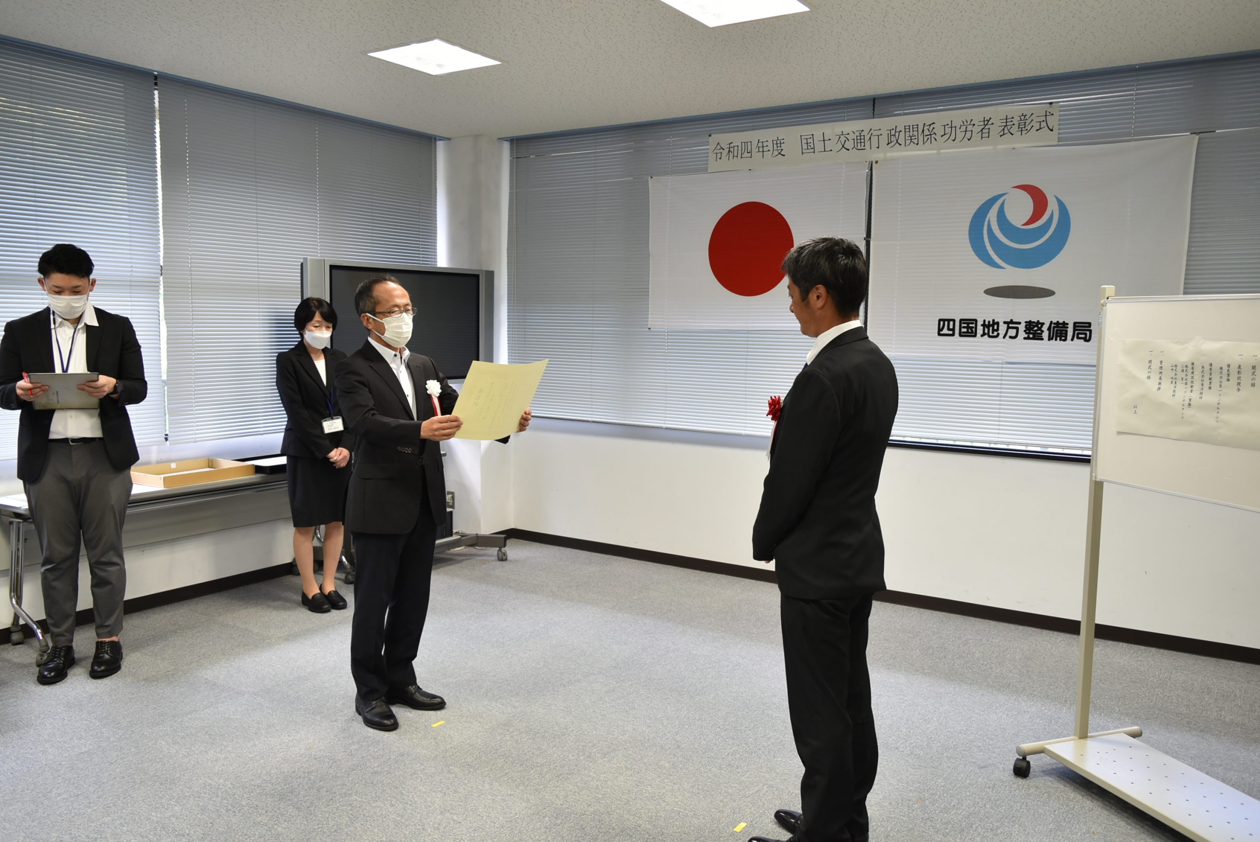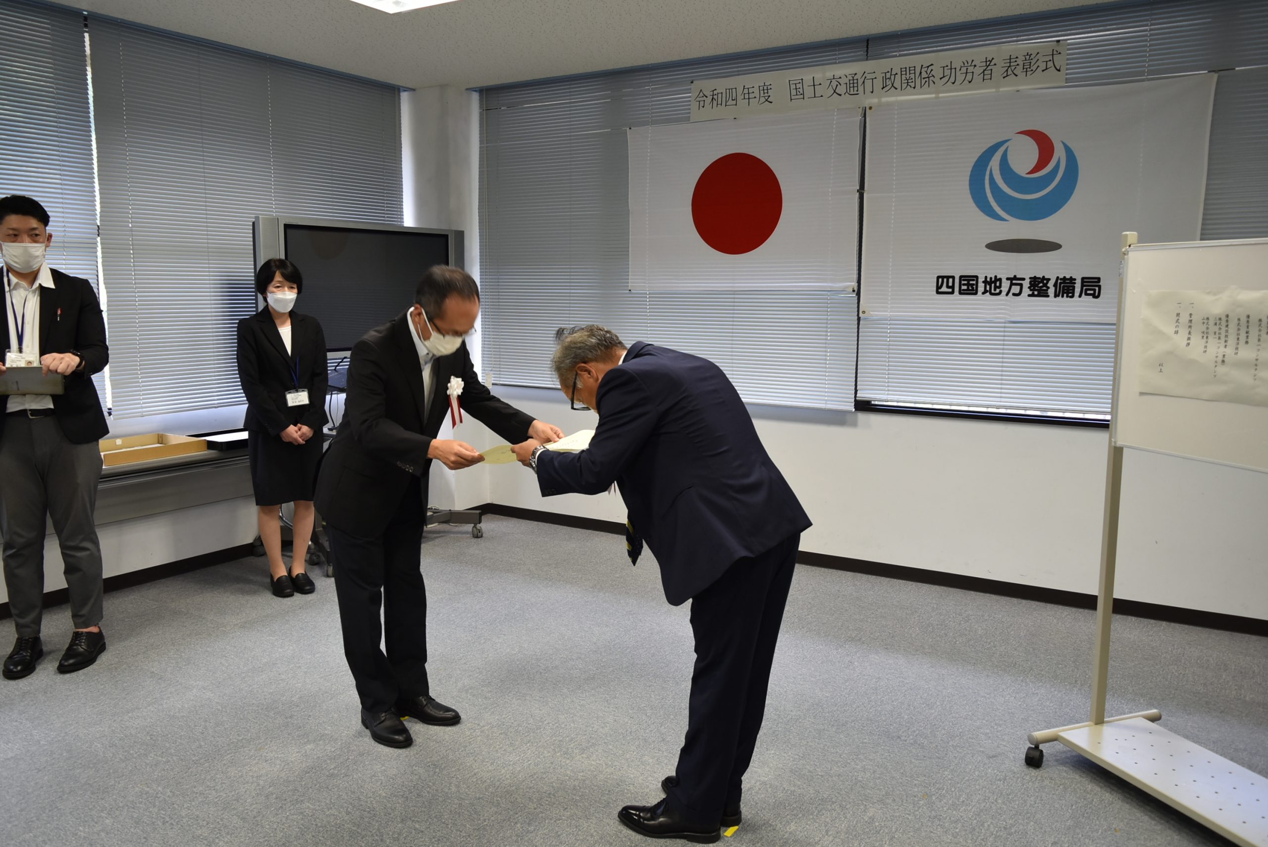 令和4年7月28日に大渡ダム管理所において令和四年度国土交通行政関係功労者表彰式があり、以下の業務が表彰されました。