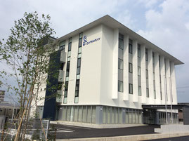 社員が楽しく快適に仕事ができることを最優先に設計したユニバーサルデザインの理想的なオフィスです。120人が座れる広い研修室、食堂、広く明るい執務室、120台駐められる広い駐車場、南海トラフ巨大地震に備えた自家発電装置、防災井戸などを完備しています。